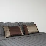 The property is furnished with a sofa set featuring modern facilities like a flat-screen TV with satellite channels. A bathroom includes a separate toilet and a shower, as well as towels and slippers.